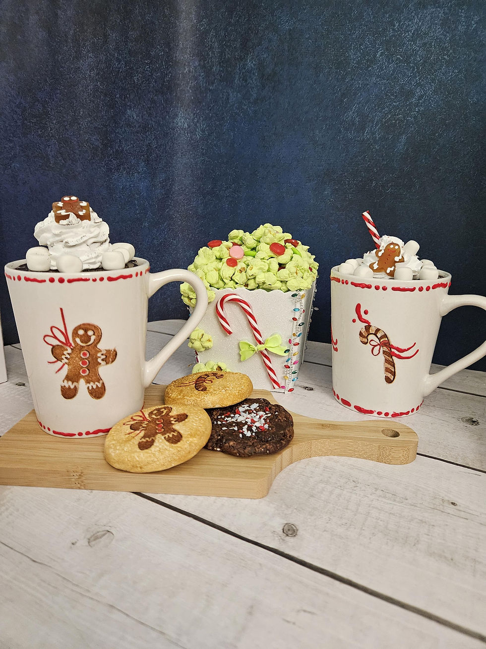 Fake Hot Cocoa Mugs with Cookies & Popcorn: Holiday Photo Props